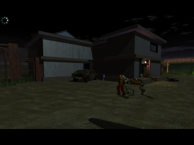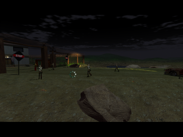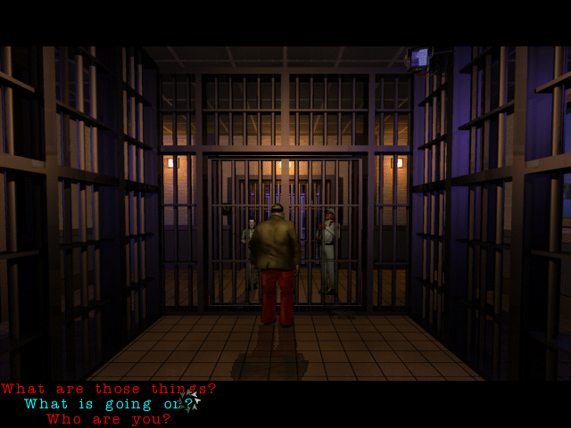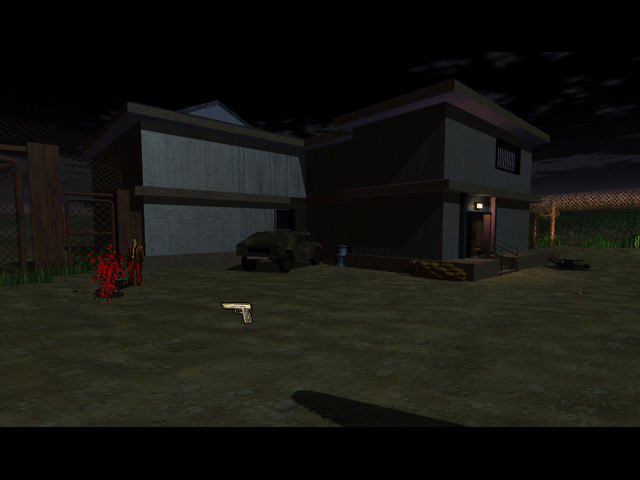 Первый игровой режим, который нас встречает, - это тот самый виртуальный тир, но с видом от третьего лица: герой движется по экрану, его со всех сторон преследуют зомби, а нам, "как бы наблюдающим это со стороны", нужно курсором, принявшим форму пистолета, щёлкать по приближающейся нечисти, - и персонаж тогда будет поворачиваться в разные стороны, целиться и стрелять по ним; иными словами, всё происходит медленно (хорошо хоть погибают враги с одного выстрела). Что будет потом - в деталях описывать не будем, дабы не раскрывать всего сюжета игры, но скажем, что по большей части это всё-таки подобие adventure: мы управляем Мэттом с видом от, по сути, третьего лица, но с как будто фиксированной камерой: фоны отрисованы заранее, двигаться формально можно в трёх разных направлениях (управляется игра с клавиатуры), но на деле особых пространств для перемещения толком нет. Присутствует и курсор в форме шестерёнки, который нужен как для взятия предметов, так и для диалогов с NPC.