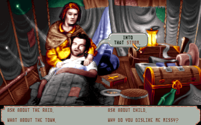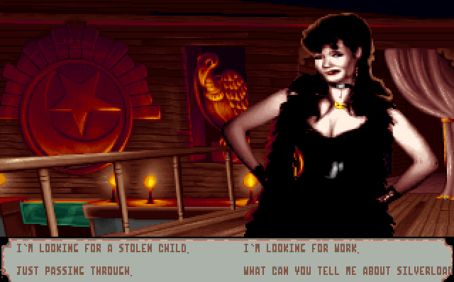 Итак, встречайте: ковбойско-вампирский квест - SilverLoad. Выполнен он полностью на движке, который ранее использовался в квесте с RPG-элементами "Daughter of Serpent" (1992), затем перевыпущенном в упрощенном квестовом ремейке The Scroll (1995).