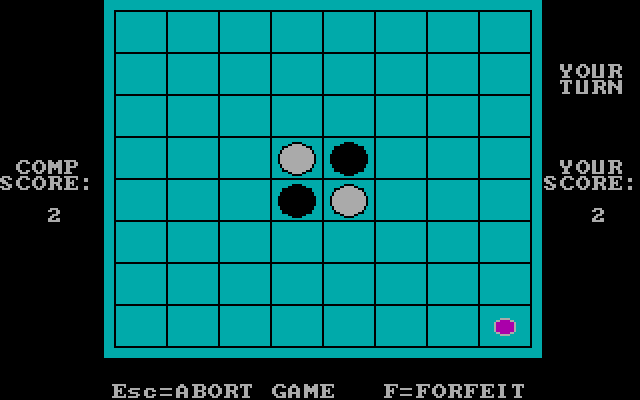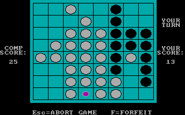 Компьютерный вариант настольной игры ревеси (также известной как Othello). Не буду подробно описывать правила, благо их можно легко найти, - скажу лишь, что в игре используется стандартная сетка 8х8 клеток, есть возможность играть как с другим человеком, так и с компьютером, а также выбрать, кто будет ходить первым.