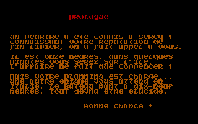 Из минусов - увы, РС-версия умудряется выглядеть хуже не только издания для прогрессивного Atari ST, но даже и вариантов для стареньких Thomson и Amstrad CPC. Что крайне жалко: ведь действие разворачивается в уникальном месте - на красивейшем острове Сарк, который до сих пор остаётся единственным феодальным владением Европы!