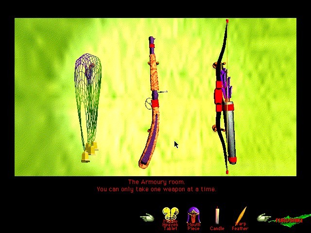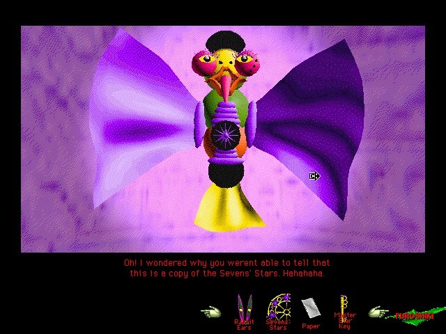 Однако, как это ни печально, далеко не все нововведения сиквела заслуживают однозначно похвального отзыва. Несмотря на то, что теперь мы взобрались на самое небо, в «Chu-Teng» напрочь отсутствует такая фирменная особенность «Tong-Nou» как реинкарнация: персонаж у нас теперь один, а смерть Рина означает... да-да, Game Over и ничего более. Увы, преждевременного окончания игры вряд ли получится избежать, и это второе крайне сомнительное решение авторов – в геймплей добавилось несколько аркадных вставок: что-то вроде тира, файтинга и тому подобного. Жаль: для поклонников разного рода боевиков и просто динамичного геймплея этого вряд ли будет достаточно, чтобы заинтересоваться сюрреалистическими приключениями в мире мифологической психоделии, а вот любителей спокойных и медитативных адвенчур такие новшества могут и отпугнуть. Тем более что имеющиеся на сегодняшний день эмуляторы Macintosh, которые наверняка окажутся единственной возможностью запуска «Chu-Teng» для подавляющего большинства современных игроков, из-за некоторых особенностей своей реализации, не предусматривающей регулировку скорости эмуляции, способны затруднить прохождение такого рода моментов, особенно на сравнительно неслабых машинах (и потребовать применения сторонних программ из разряда «замедлялок»).