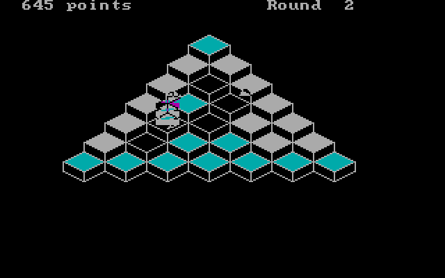 В 1982 году одним из игровых хитов стал Q*bert, вышедший на большом количестве платформ и добравшийся до IBM-PC только два года спустя. Причём он не только припоздал, но и потерял товарный вид: PC-версия проигрывала другим платформам в плане графики. Но легендой круглый хоботач на ножках всё же стал. И, разумеется, ушлые разработчики игр под DOS поспешили дать пользователям этой платформы поиграть в такую замечательную игру (а вовсе не срубить побольше денег на клонах популярной игры, как можно было бы подумать). В 1983 году Orion Software выпускает J-Bird, сохранив механику оригинала, но заменив модели врагов и главного героя на какую-то носатую репку на ножках (на птицу это ну никак не похоже), а Sierra выпускает Mr. Cool, нечто невразумительное с ногастым кирпичом в качестве героя (но не из-за жажды наживы!) и не очень-то похожее на первоисточник. И в этом же году появляется наш герой - Bert and the Snake, тоже клон Q*bert’а, почти что и не скрывающий этого.