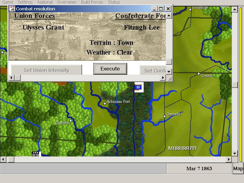 Театр военных действий представлен обширной территорией юго-восточного побережья Северной Америки, размером примерно 500 на 300 км. Временной промежуток - на ваш выбор: либо полная кампания с 1861 по 1865 гг., либо укороченные сценарии с выбором стартовой точки отсчета, при этом игра со всей скрупулезностью воссоздаст военную и политическую обстановку, соответствующую выбранной дате.