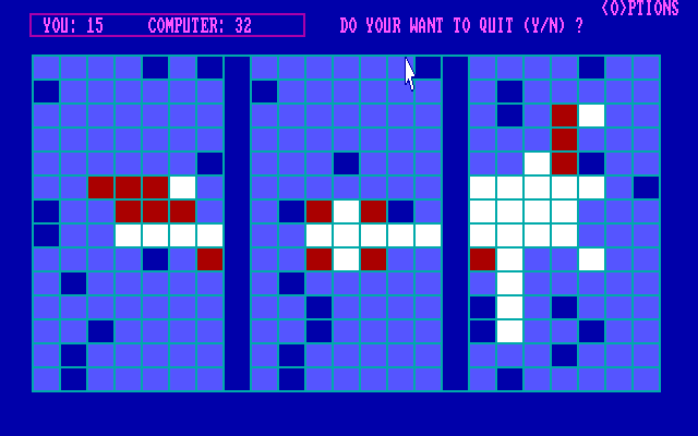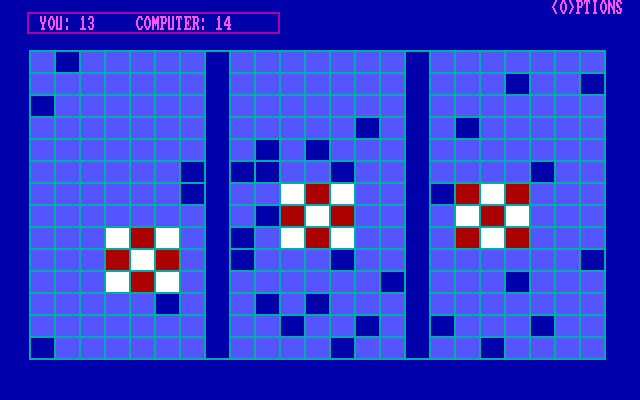 В Doubolo вносится всего одна поправка к этой схеме: поле теперь составлено не из восьми рядов и колонок, а из двух больших квадратов, соединённых «перешейком», и стартовых позиций две. Что это даёт? Большую вариативность развития партии. Несмотря на короткую формулировку, на деле это довольно масштабное расширение возможностей: классические варианты решений становятся неактуальными, и неминуемо приходится выискивать что-то новое. На этом фоне расстраивает отсутствие возможности игры с живым соперником - к нашим услугам только искусственный интеллект. Зато - предвидя, что подобные партии могут не на шутку затянуться, - разработчик добавил функцию сохранения.