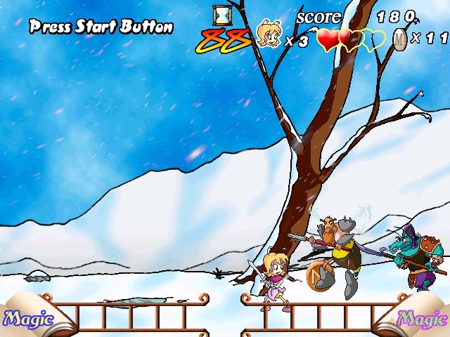 Игра состоит из нескольких локаций, каждая из которых, в свою очередь, подразделяется на уровни; начинать прохождение можно с любой локации, но вот уровни в рамках каждой из них придётся одолевать последовательно. На каждом уровне присутствует ограничение по времени, но, во-первых, существуют специальные бонусы в виде песочных часов, поднятие которых это ограничение существенно расширяет, во-вторых - игра явно ориентирована на детскую аудиторию и потому довольно проста: уровни небольшие, враги слабые, у героя имеется определённый запас здоровья, к тому же восполняемый бонусами в виде бутылочек, и несколько "жизней".