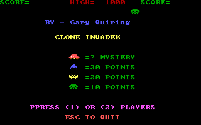 Несмотря на то, что Clone Invader не пытается скрыть, чьим подражателем является, пара нововведений в ней всё-таки присутствует. Да, здесь, как и прежде, сверху будет надвигаться рой разномастных (целых три вида!) враждебных инопланетян, а кораблик игрока будет перемещаться в горизонтальной плоскости внизу экрана и отчаянно отстреливаться. Огонь имеет смысл вести не только по противникам, но и по выпускаемым ими снарядам, которые можно сбивать. Но можно и не сбивать, а уклоняться или прятаться за четырьмя отдельными укреплениями, которые, впрочем, не вечны - попадания их истачивают. За каждого подстреленного врага начисляют очки, а за периодически появляющуюся у верхнего края экрана похожую на печеньку летающую тарелку дают существенный бонус.