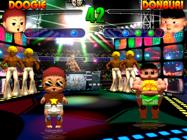 Давайте же приступим к изучению главного – процесса игры! Под вашим руководством может оказаться кто-то из шести детишек, отличающихся не только внешностью, но и физическими особенностями. Никаких данных в игре не приведено, однако в ходе соревнований становится очевидным, что, например, малыш родом из Африки бегает куда быстрее азиатского мальчика, напоминающего борца сумо. С дисциплинами (а точнее, с их разнообразием) в игре тоже всё обстоит неплохо: представлены как классические виды спорта (забег на короткую дистанцию, бокс, прыжки в длину), так и весьма экзотические, вроде растягивания носорога или перепрыгивания через скакалку-молнию. Некоторые соревнования выглядят если не жестоко, то несколько неоднозначно. Два младенца, шлёпающих друг друга по лицу, – это ещё не самое удивительное! Как вам понравится такое задание: малышу необходимо выплыть (или всплыть?) со дна водоёма на поверхность, но движения крайне затрудняет привязанная к ножке гиря… Несмотря на особый корейский юмор, игра вызывает море позитивных эмоций! Атмосфера поддерживается постоянными овациями зрителей и задорным голосом ведущего.