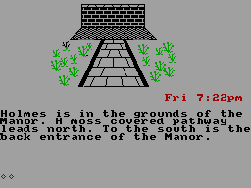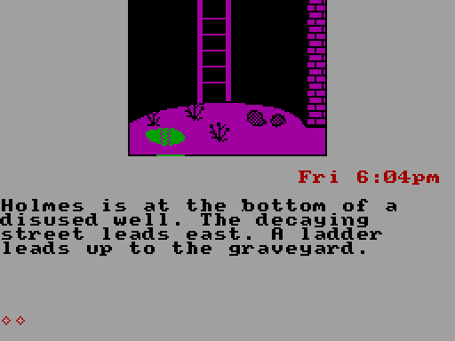 Текстовое приключение от двух британских авторов, первое (и, видимо, последнее) в запланированной серии «Detective Tales», вернёт нас в викторианский Лондон и позволит снова поиграть за Шерлока Холмса (хотя по названию это и не поймёшь). К сожалению, и без того высокая сложность «The Raven» значительно усугубляется тем обстоятельством, что прилагавшаяся к оригинальному изданию 20-страничная брошюра с руководством пользователя, предысторией игры и некоторыми подсказками к её прохождению в настоящее время отсутствует в свободном доступе.