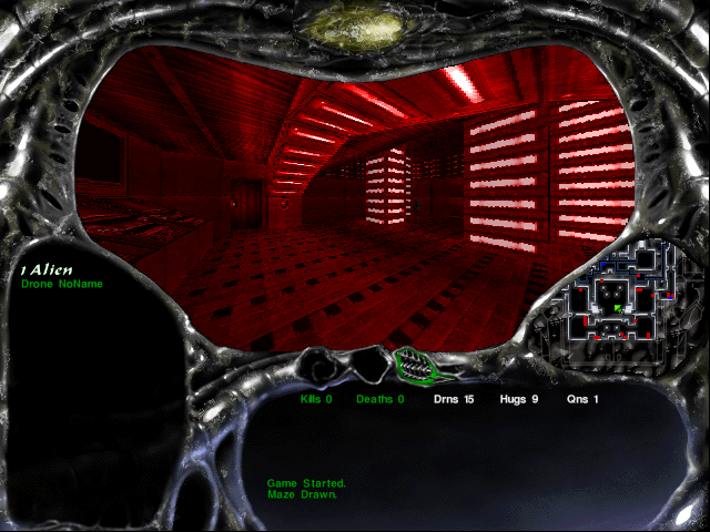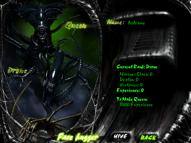 Кто из нас не помнит оглушительный успех игры Aliens versus Predator от Fox Interactive, где можно было почувствовать себя в образе трёх абсолютно разных, биологически сильно различающихся протагонистов? Но такой ход был предварительно обкатан именно на Aliens Online, кстати, изданной всё той же компанией. Здесь вы можете стать космическим морпехом или Чужим. В режиме игры за морпеха можно «хранить» в анабиозных капсулах трёх своих разных персонажей, которых вы должны с нуля создавать, выбирая лица, раскрашивая одежду и другое. Доступны как мужской, так и женский персонажи. На выбор вашему герою можно назначить военную специализацию: пехотинец, специалист по тяжёлым вооружениям, разведчик и медик. У Чужих – интереснее: можно ощутить себя фейсхаггером классическим, дроном (кажется, это то же самое, что и солдат) или даже… королевой. Но, к сожалению, в демоверсии последний вариант с королевой почему-то недоступен изначально. Видимо, этот титул нужно долго и упорно зарабатывать в геймплее. Меню оформлено шикарнейшим образом – в лучших традициях тех лет с очень качественной графикой, а все кнопки и пункты – «чпокающе-пиликающие», как это и положено в играх с научно-фантастическим сюжетом. В геймплее «за Чужих» и в соответствующем разделе меню заметны слабые попытки воспроизвести неповторимый сюрреалистичный стиль одиозного швейцарского художника Г. Р. Гигера. Могли бы уж и получше сделать эту часть графики, чтобы теперь не было стыдно перед мэтром (увы, его больше нет с нами)…