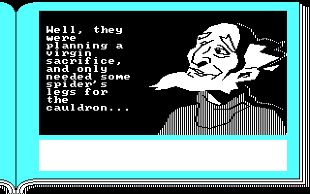 Возможность переключаться в определённых местах на «параллельные» истории, повествующие о судьбе других персонажей, по-прежнему в строю и весьма радует привнесением хоть какого-то разнообразия в не отличающийся интерактивностью игровой процесс. Увы, ответвлений здесь не так уж и много – пожалуй, даже меньше, чем в «Assault on Egreth Castle», – а общая продолжительность составляет примерно те же полчаса (без учёта времени, требующегося для знакомства со всеми альтернативными сюжетными линиями). Но что расстраивает больше всего – так это традиционный «cliffhanger» на самом интересном месте: вместо надписи «The End» мы видим лишь обещание продолжить сказку в «Zork Quest №3» (которому так и не суждено было появиться на свет).