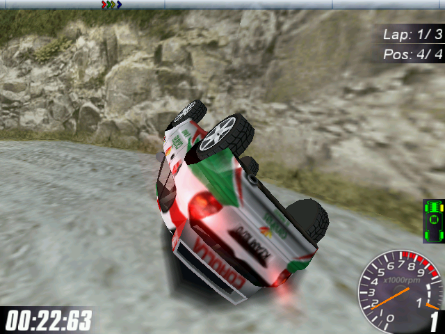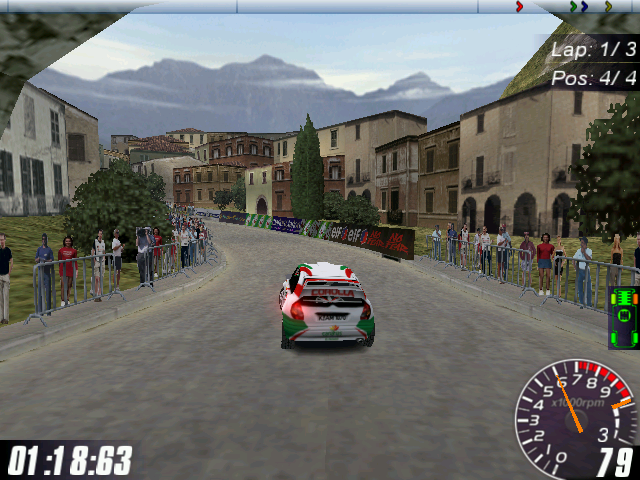 Первый режим - это та самая схватка "чемпионов": трассу здесь выбирать нельзя (ибо событие имеет чёткую географическую привязку - см. выше), а целью являются последовательные победы над оппонентами: каждого из семерых нужно обогнать в двух парных заездах из трёх. В одиночной игре предполагается несколько вариантов - "Championship", "Single Race" и "Time-Attack". "Championship", в свою очередь, включает в себя следующие разновидности: "Rally Masters Championship" - по сути, "дорога к успеху": от вас требуется победить в гоночных соревнованиях на трассах пяти различных государств (Италия, Индонезия, Швеция, США, Великобритания), тогда как последней - шестой - станет всё та же "заветная" на острове в Канарском архипелаге (выбирать машину нельзя; соперник на каждой трассе один, определяется случайным образом и двигается по "соседнему" участку трассы, то есть столкнуться с ним невозможно); "Rally Masters Challenge Cup" - последовательно проходим стадии четвертьфинала, полуфинала и финала, стараясь победить трёх назначенных компьютером соперников (трассу можно выбирать самому, автомобиль - нет); Rally Trophy - гонка на время по незамкнутным трассам (в предыдущих описанных вариантах они кольцевые), где необходимо доехать до финиша быстрее 11 конкурентов, причём последние для нас невидимы, и можно лишь отслеживать текущее время до финиша у каждого из участников; здесь самостоятельный выбор автомобиля уже предусмотрен, а также имеется штурман, предупреждающий о возможных опасностях. "Single Race" подразделяется на "One Event" - возможность "пройти" только соревнование на какой-то одной трассе из шести представленных (по вашему выбору), "One Race" - практически то же самое (включая возможность выбора трассы), но в форме практики; "Time-Attack" - одиночные заезды по любой из трасс на выбор, где целью является прийти к финишу как можно скорее.