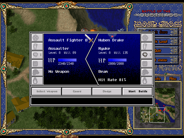Но сюжет сюжетом, а что у нас «под капотом»? Пошаговые (используется шахматная схема: вы ходите одной своей машиной, затем то же самое делает противник) бои между небольшими отрядами гигантских человекоподобных роботов на игровом поле, поделенном на квадраты. Каждый юнит обладает своим уникальным набором оружия (которое делится на два вида – для дальнего и ближнего боя) и спецспособностей (ну тут без изысков – ремонт, увеличение защиты, уклонение и т.д.). Управляется всё это с помощью контекстного меню, вызываемого при клике на боевой единице. Команд немного – движение, атака, статус, спецприемы. Не запутаетесь. В ходе боя ваши солдаты зарабатывают очки опыта и получают так называемые «элементы стихий». Первые уходят на повышение уровня и прокачку спецумений (это делается автоматически), вторые – тратятся на параметры героев (здоровье, щиты, энергия) и распределяются вручную по окончании миссии.