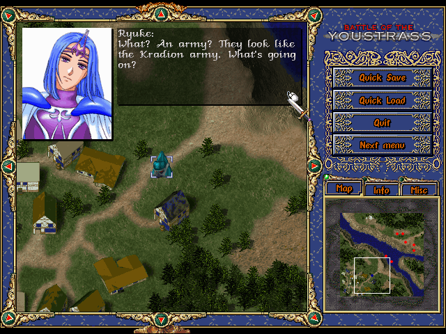 Сюжет Battle of the Youstrass собран из всевозможных штампов как из кубиков Lego. Вот есть две страны - одна «плохая» (а всё потому, что, простите, «жрать нечего»), другая «хорошая». Они начинают воевать друг с другом. «Плохие» почти победили, но тут верхом на белом ко…, то есть на боевом роботе появляется главный герой (и пусть вас не смущает его портрет, мелькающий в диалогах, - это парень) со товарищи и портит весь праздник. В качестве вишенки на торте вам иногда дают сделать «очень важный выбор», который вроде как влияет на историю.