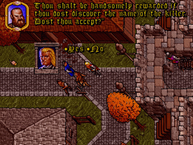 Портал захлопывается за спиной, и Аватар видит перед собой своего старого друга Iolo, разговаривающего с перепуганным крестьянином. Похоже, нечто ужасное произошло в конюшне…