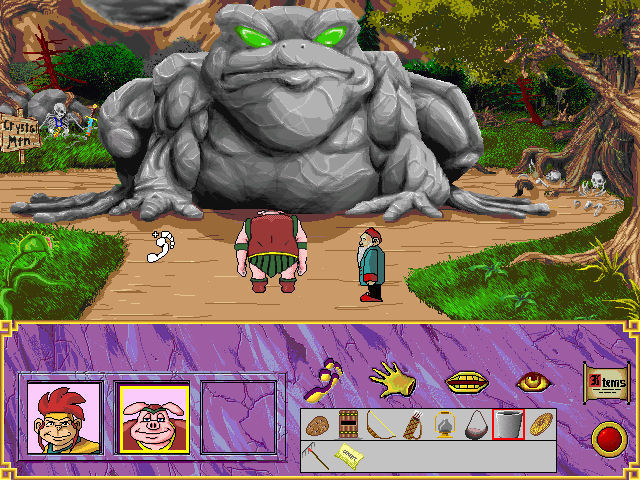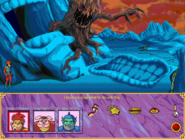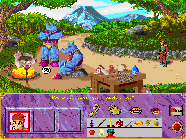 Так как путешествуют герои в рамках игры поодиночке, то и инвентарь у каждого свой собственный. Впрочем, никаких оснований жаловаться на недостаток предметов нет, так как путешественники без ложной скромности присваивают всё, что оставлено без присмотра. Но набить карманы утварью – полдела, ей ещё необходимо найти соответствующее применение. А именно умение с умом и вовремя распорядиться собранными вещами является ключом к продвижению по нити повествования. С логикой и здравым смыслом в WuKung: A Legendary Adventure всё в порядке (нечастая удача в квестах!), поэтому при должной внимательности и смекалке помочь Вукунгу, Эдди и Сэймуру в решении возникающих задач сможет даже неискушённый игрок. Не забыта и ещё одна традиционная составляющая геймплея – диалоги, хотя на словесные излияния здесь отведено на порядок меньше места, чем в книге-первоисточнике. Потенциальных собеседников хватает, но ни о какой многоступенчатости или выборе вариантов ответа речи не идёт, зато время от времени персонажи с удовольствием дают искрометные комментарии тем или иным вашим действиям. К сожалению, субтитры в игре не предусмотрены, поэтому информацию из монологов и диалогов приходится воспринимать исключительно на слух. Это может вызвать определённые сложности при прохождении и способно смазать впечатление от игры в целом, однако критичным данное техническое упущение назвать всё же нельзя.