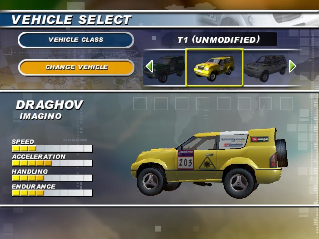 Аркадная гонка на внедорожниках по не имеющим чётких боковых границ трассам на пересечённой местности. Вроде бы сделана по лицензии малоизвестного раллийного чемпионата (правда, явно без получения такой же лицензии на марки автомобилей - все они здесь вымышленные).