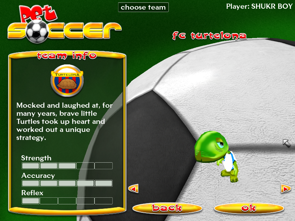 На выбор игроку предлагается двенадцать команд, часть которых доступна сразу же, а остальные придётся открывать путём завоевания первых мест в турнирах. Взяв под своё управление, например, Ajax Panterdam (все клубы имеют подобные названия), мы можем участвовать во «всезверином чемпионате», состоящем из семи кубковых и прочих соревнований. Либо можно сыграть традиционный одиночный матч, однако не открытые в основном режиме компоненты там будут недоступны.