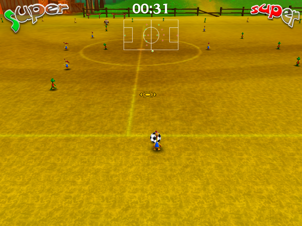 Выбрав цвет футболок и ознакомившись с турнирной сеткой, можем приступать к первой встрече. Разумеется, отличий от «большого» спорта здесь хватает: игроков на поле присутствует по семь в каждой команде, а не по одиннадцать, офсайдов нет, грубостей тоже (хотя реально заработать штрафной, но не карточку), зато есть суперспособность: как только одна из сторон заполнит надпись «SUPER» рядом со своим названием, появится возможность нанести удар сокрушительной силы, который будет сметать на своём пути всех, включая вратаря. Главное – точно прицелиться. При этом у разных зверушек эффект и анимация этого события несколько отличаются.