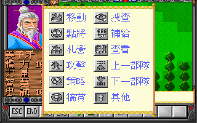 Управление простое – мышью по кнопочному интерфейсу, обладающему слабой претензией на «оконность». Тут с пиктограммками вышел небольшой конфуз. Видимо, в погоне за рельефностью кнопок и миниатюрностью иконок авторы так увлеклись, что догадаться об их назначении бывает порою сложновато. Однако, к счастью, имеется встроенная справка с иероглифическими пояснениями для каждой кнопки. Меню, расположенное в нижней части экрана, довольно разветвлённое и насыщенное. Есть много сугубо полководческих команд. Например, вы сможете передислоцировать войска (移動), собрать генералов (點將), разбить лагерь (札營), напасть (攻擊), изменить тактику (策略), отправить в разведку (搜查), осмотреться (查看), представить к награде (犒賞) и наладить снабжение (補給). Из базовых ролевых элементов имеются четыре параметра у каждого из ваших военачальников: здоровье (體力), сила (力量), мудрость (智慧) и преданность (忠誠) – восставшим, конечно. В главных игровых параметрах всё просто: численность войск (帶兵), золото (黄金) и провизия (米糧) – просто рис. В общем, оторвитесь от повседневных домашних забот, взвалите на себя бремя главнокомандующего, освобождающего Поднебесную от обезумевшего и жестокого кровопийцы. Цель святая – установить светлую демократическую власть новой династии Чжоу!