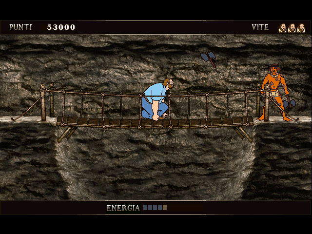 Рады представить вашему вниманию очередной раритет: итальянский битэмап с видом сбоку, формально сделанный по мотивам итальянского же телесериала "Парочка ангелов с четырьмя кулаками" (а в дополнение к оригинальной его версии - и немецкую локализацию). Если верить найденным данным, то сюжет у первоисточника следующий: два здоровенных преступника сбежали из тюрьмы, потом были вынуждены замаскироваться под католических монахов - и в итоге оказались в индейской деревне Сан-Роландо в Латинской Америке, где помогли её жителям справиться с нападками местной банды, возглавляемой злодеем Сантильяной. Игра - опять-таки формально - следует этой фабуле (в очень сокращённом и упрощённом изложении), однако, собственно говоря, знать что-либо о её предыстории на деле совершенно не обязательно.