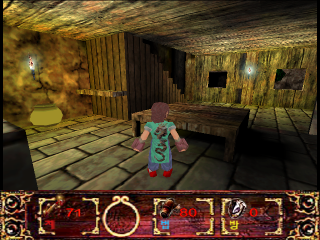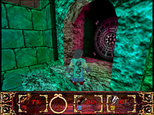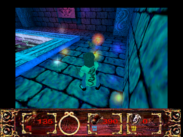 Ваш персонаж может прыгать, бегать и даже плавать. Всё игровое окружение разнообразно представлено просторными залами, глубокими водоёмами, великолепными храмами, деревенскими домами и пещерами. Уровней как таковых нет: для перехода между локациями в огромных количествах используются телепорты, – это такие большие круглые камни с ажурной резьбой на поверхности. Ролевая модель предельно проста (обозначения из корейской версии): сила духа (지), магия (법) и защита (방). Для поддержания духа нужно подбирать различные шарики. Магия – это собственно ваш боезапас для вооружений дальнего радиуса действия – различных шаров с волшебной энергией. Магическую силу хорошо пополняют, например... грибы! Необходимо подбирать различные свитки и книги – видимо, для информации, которая поможет в поисках демона-быка. Вооружение можно переключать цифровыми клавишами. Дополнительную мощь ударам придаст посох, который вы найдёте в одном из храмов. Нужно беседовать со всеми встреченными NPC. Враги предельно колоритны: амазонки с мечами, воины-копьеносцы, каменные големы, отвратительные шагающие пни с тонкими руками-веточками, пауки, скорпионы и многие другие.