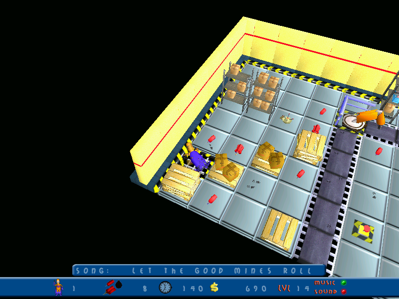 К счастью, с игрой этот "сюжет" по факту никак не связан, а сама она чрезвычайно захватывает. Начнём с того, что это вовсе не очередной вариант "бомбермена" - и даже, в общем-то, ни разу не аркада, а чистой воды паззл, просто в непривычном антураже и с не слишком типичной механикой. Герой может передвигаться исключительно по клеткам (причём "обыкновенным" - поскольку встречаются и отличные по внешнему виду, и по ним ходить нельзя) и перепрыгивать через бомбы, но преодолевать иные препятствия (встречающиеся здесь в изобилии) не способен. Его цель на каждом из множества уровней (объединённых, в свою очередь, в несколько эпизодов) - полностью зачистить это помещение от бомб всех видов ("собственно бомб", динамитных шашек и так далее). Для этого важно уяснить три правила. Во-первых, если клетка с боеприпасом граничит с другими аналогичными (то есть содержащими что-то взрывоопасное), то достаточно "поддать огоньку" на одной - и взорвутся все, оставив в полу дыры, перепрыгнуть и вообще как-либо преодолеть которые будет невозможно. Во-вторых, довольно часто встречаются места с надписью "info", - на такие обязательно требуется вставать и читать выдаваемую информацию: дело в том, что зачастую взрыв конкретной клетки приводит и к уничтожению граничащих с ней пустых - но не всех, а лишь конкретных (и в упомянутой "информации" вам как раз покажут, каких именно применительно к той или иной бомбе). В-третьих, на многих локациях встречаются так называемые "края" - малозаметные пределы помещения, выйти за которые можно - но не нужно, ибо это приводит к гибели героя точно так же, как падение в пропасть, образовавшуюся после взрыва клетки, либо же попадание в эпицентр взрыва. Управление осуществляется стрелочками (движение) и "пробелом" (поджигание фитиля): встаём на клетку с бомбой, нажимаем самую длинную кнопку на клавиатуре - а затем отступаем на одну соседнюю безопасную клетку (на большее число не выйдет - взрыв происходит практически мгновенно, но не причиняет вреда, если место для отхода выбрано верно).