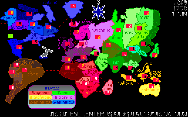 Как уже было сказано в начале, все тексты в Lucullus на иврите, отсюда – даже если вы хорошо знакомы с механикой «Risk!», без знания языка у вас возникнут некоторые проблемы с освоением управления. Главное - помните: по нажатию F1 вызывается основное меню, через которое можно попасть в справку - и уже там высматривать в массиве букв знакомые обозначения клавиш.