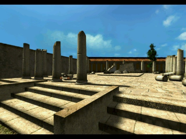 За внешность виртуальных Помпей отвечает движок CinVision, отличающийся видом от первого лица со свободным панорамным обзором на все 360 градусов и уже опробованный Arxel Tribe в фантастических «Ring» и «Faust». Понятно, что античный город, реконструированный с его помощью, оказывается намного более впечатляющим, нежели средневековый Лангедок в «Pilgrim», однако своему собрату Omni3D от Cryo CinVision всё-таки несколько проигрывает в детализации и живописности. Зато фирменным словенским акцентом исторической адвенчуры французского типа оказывается постоянное переключение в перспективу от третьего лица при многочисленных роликах и просто беседах с другими персонажами, с демонстрацией нам внешнего вида нашего брюнетистого протагониста. Вот только персонажи эти кажутся, увы, наспех срубленными мраморными болванчиками: скупо анимированы лишь их приход или уход на место встречи, изредка движения рук или головы, – а рты почему-то остаются неподвижными даже в разгар самых по-итальянски бурных споров...
