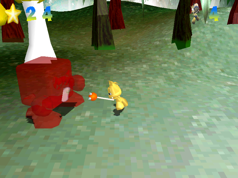 Но самое ужасное - это противники: на первом уровне нам предстоит двигаться по узкой дороге (за её пределы выйти невозможно) и убивать беззащитных и, в общем-то, мирно к нам настроенных улиток и гигантских жуков, которые просто медленно (очень медленно) ползают от одной обочины до другой, - а также уже агрессивных пчёл (подлетающих к нам с враждебными намерениями, если приблизиться к ним). По факту прохождение превращается в совершенно чудовищную и чуть ли не до боли унылую тягомотину: герой потихоньку движется по дорожному полотну, размахивая своей булавой; как только заметили врага - то снижаем скорость ещё больше и вычисляем позу, из которой по нему точно можно будет попасть; чаще всего для этого приходится и вовсе останавливаться, чтобы дождаться, пока улитка или жук окажутся в зоне нашей досягаемости, потому что если персонажа сдвинуть - то нужную позу он уже потеряет. Прыгать порой нужно, но ничего особенного это действие собой не представляет - и в плане отнюдь не сложности, а того, что прыгун из Тонко явно никудышный. Присутствуют и боссы - скажем, первым из них является огромная лягушка, задолго до встречи с ней начинающая осыпать нас исторгаемыми из пасти ядрами (от них остаётся только уворачиваться, что с учётом омерзительной механики перемещения не так-то легко), к тому же засевшая за пропастью, перепрыгнуть которую - тоже не самое простое дело.