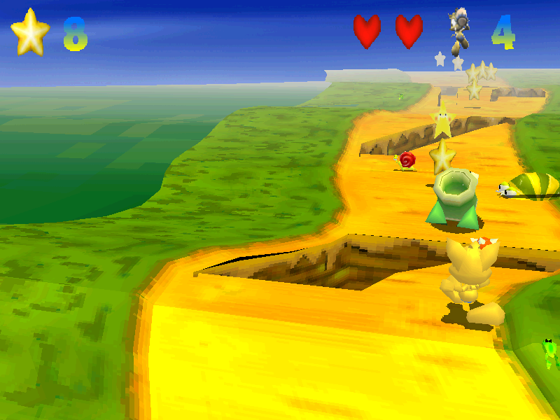 Имеется несколько "жизней" (с возможностью увеличения этого количества путём, по-видимому, сбора бонусов-звёзд), а также выраженный в виде шкалы "сердечек" запас здоровья в рамках каждой из них; если происходит столкновение с врагом, то последний погибает, а протагонист теряет какое-то количество энергии (иногда сразу довольно значительное); что интересно - при обнулении вышеупомянутой шкалы играть всё равно можно продолжать, просто гибель наступит после первого же контакта с кем-то или чем-то. Иногда можно встретить вращающиеся в воздухе прозрачные сферы: если подпрыгнуть и коснуться их - то персонаж окажется на бонусном уровне, смысл (но не антураж) которого ничем не отличается от обыкновенного (собираем звёзды и убиваем созданий), но любое полученное там повреждение, с одной стороны, мгновенно возвращает нас в "основную" игру (сохраняя все собранные звёзды), с другой - к реальному ухудшению состояния здоровья не приводит. На каждом этапе имеются контрольные точки, где происходит автоматическое сохранение и где наш гоблин возрождается в случае гибели (если истрачены ещё не все "жизни").