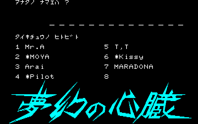 В центре, кроме имени героя, показываются ещё четыре параметра: здоровье (タイ干ュウリョク), мана (マリョク), деньги (ザイリョク), дни (二ッスウ). Остальное можно узнать через команду D. Набор заведений в городах, как правило, стандартный: магазины для купли-продажи, таверна и ряд других специализированных мест.