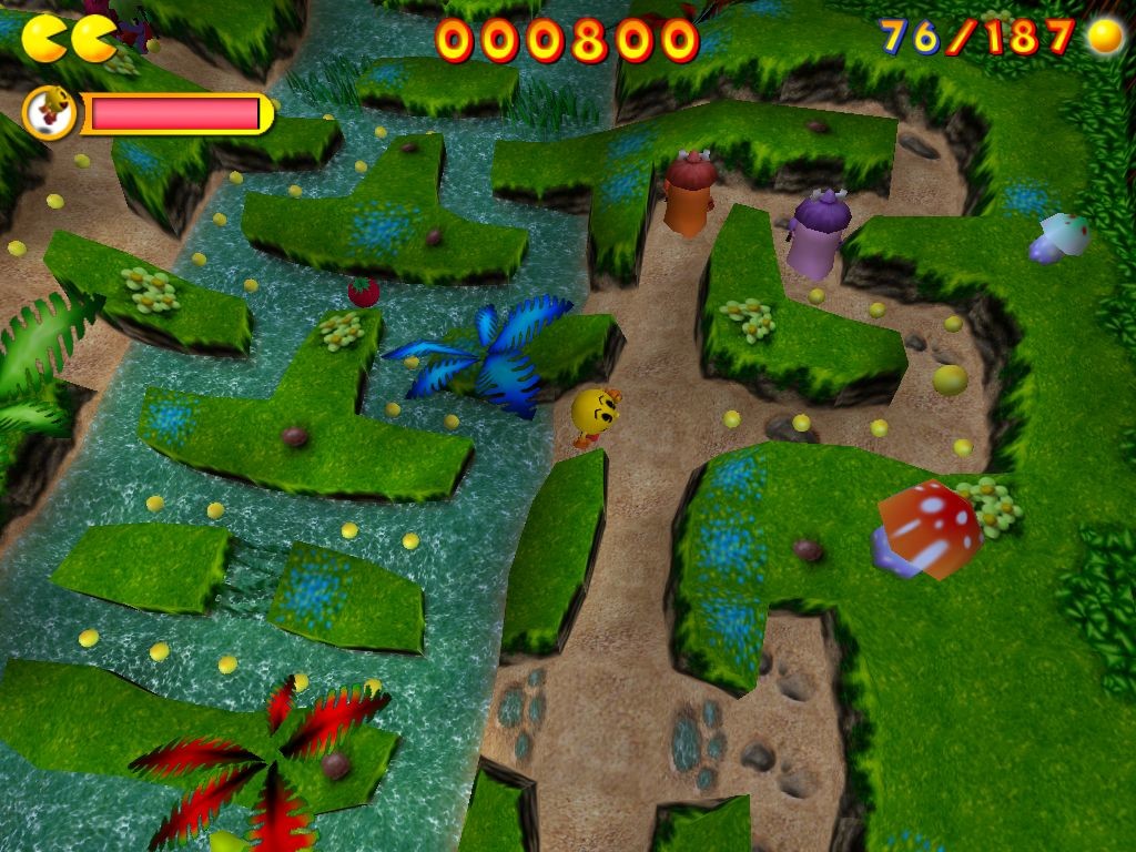 Игровой процесс в основе своей сравнительно примитивен и подобен таковому из оригинала: от нас требуется кушать точки, набирая тем самым очки, и уворачиваться от снующих туда-сюда, но чаще всего не преследующих протагониста целенаправленно привидений; периодически среди бонусов для сбора будет обнаруживаться крупная точка, больше смахивающая на пилюлю, - как только она поднята, все призраки временно становятся синего цвета, а главный герой обретает способность питаться ими безо всякого вреда для своего здоровья. Цель каждого из "обычных" уровней - собрать конкретное количество точек (отмеченное в правом верхнем углу экрана), после чего произойдёт автоматическая телепортация к следующему этапу.