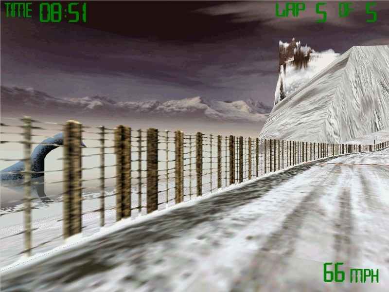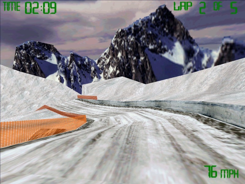 Из других новшеств заметны разве что добавившийся четвёртый уровень сложности (он-то и называется «чемпионским») да ожидаемо пополнившийся ассортимент аудиодорожек на компакт-диске (вместо пяти мелодий у нас теперь целых девять – к сожалению, ничего немецкого или японского наш слух услаждать не собирается). Во всём остальном перед нами всё та же, незамысловатая и бюджетная, но не лишённая привлекательности гонка на редком виде зимнего транспорта. Напомним, что местное управление крайне радует своей предельной простотой: клавиша «вверх» отвечает за ускорение, а стрелки «влево» и «вправо» позволяют поворачиваться; нажатие «пробела» сменяет по очереди три возможных режима камеры: вид сзади, вид сзади с увеличением и (наиболее удобный, кроме разве что японского лабиринта) вид от первого лица. Нажатие «S» по желанию игрока убирает с экрана элементы интерфейса: счётчик времени, кругов (для победы на каждой трассе их нужно проехать ровно пять), скорости и время от времени появляющийся индикатор нашей позиции по отношению к четырём компьютерным конкурентам (естественно, за исключением режима «практики», где можно поездить по каждой локации в одиночку, знакомясь со всеми её хитростями для предстоящего состязания). Наконец, «Esc» выведет в левом верхнем углу удобнейшее встроенное меню, где разрешается не только завершить гонку досрочно, но и изменить всевозможные настройки. Визуальная же часть игры ничуть не изменилась со времени «Snowmobile Racing» и представляет собой вполне приятный для глаз «ранний угловатый 3D».