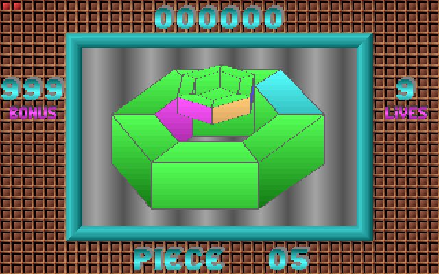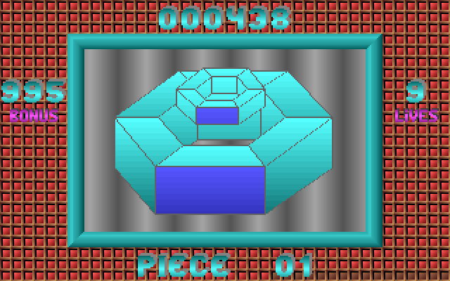 Управление - курсорными влево-вправо вращаем вокруг центра "на один шаг" всю "сборку", вверх-вниз - поворачиваем обращенный к игроку сегмент нижнего тела "поперек бублика"; shift'ы вращают "кольцо" этих граней соответственно влево и вправо, alt и ctrl - вращают верхнее тело. Клавиши Q, A, O, P просто проворачивают "в трехмере" точку зрения игрока (а еще в CGA-режиме X переключает палитру). Как и всякий "рубикоид", затягивает, но, к счастью, при старте можно выбрать уровень от первого до "текущего".