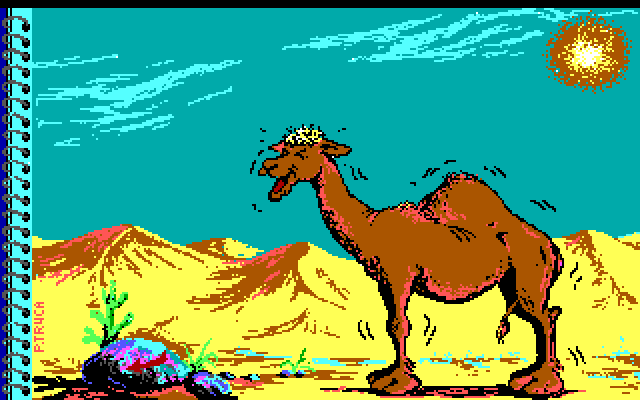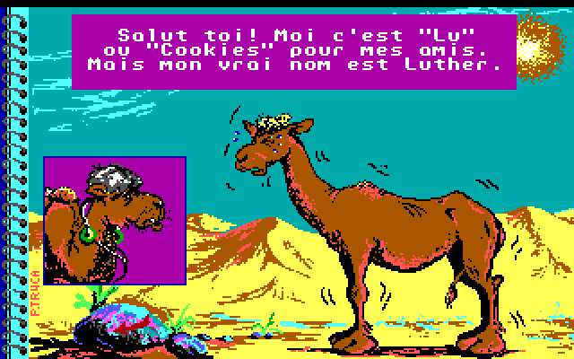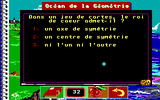 Упражнения, таким образом, нам предложены вполне разнообразные и интересные, пусть и требующие хотя бы минимального понимания французского (или использования словаря), – однако, к сожалению, в «La Bosse des Maths 5ème» их не так уж и много – пятьдесят четыре задачки, то есть всего по шесть на каждый из тематических разделов. Целью игры является набрать 50 очков в любом из них; на ответ даётся две попытки, и, если обе окажутся неверными, мы автоматически перейдём к следующему заданию, не получив за предыдущее ни единого балла, а после всех шести вернёмся на экран выбора уровня. Как уже замечалось, успешное решение приносит 2 или 4 очка в зависимости от того, использовалась ли подсказка; выданные за прохождение любого из разделов очки сохраняются, но – и это уже несколько странно – продолжать их зарабатывать можно повторно на тех же самых, уже хорошо усвоенных задачах (что делает игру несколько легче, чем хотелось бы). После успешного набора полусотни баллов мы получаем не только вожделенный горб дромадера в целости и сохранности, но и ещё один, уже совсем неожиданный сюрприз. А затем снова оказываемся на экране заставки – и всегда можем ещё раз пережить вместе с Джо утрату его гордости и достоинства и попробовать свои силы в других упражнениях. При этом имеется и альтернативная концовка: после нескольких неправильных ответов подряд местный босс вручает нам своего рода «антиприз» в виде бронзового кубка, – но возвращаемся мы уже на общую карту, где можем ещё раз попытать счастья в одной из трёх дисциплин.