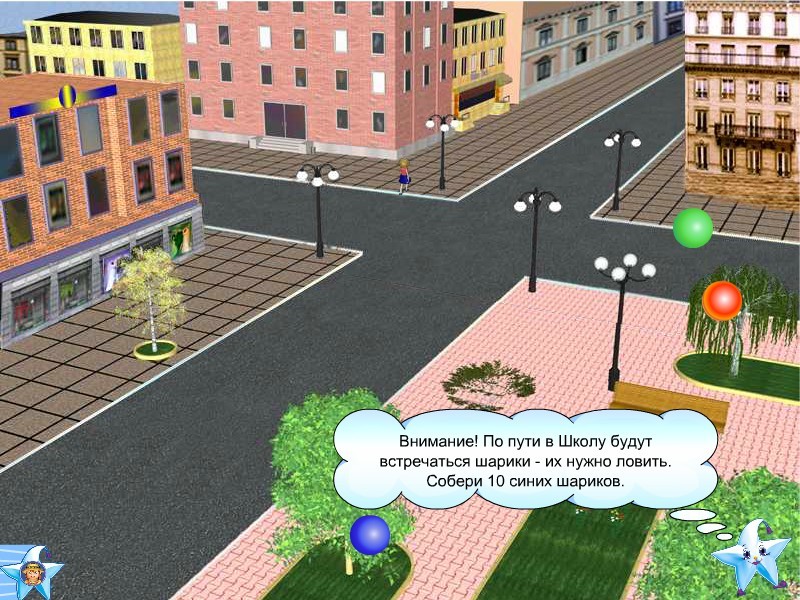 Ряд головоломок представляет собой комплексный «вступительный экзамен» в школу: например, строгие преподаватели предложат решить известную задачку типа «переложи три спички, чтобы из трёх квадратов (или двух треугольников) получилось пять»; нужно будет и размещать кусочки-фигуры таким образом, чтобы вышло изображение кошки, петуха или домика, или же составлять осмысленные словосочетания из соединённых между собой спутанными линиями букв или слогов. А, скажем, в лабиринте придётся обходить один за другим нескольких сторожей-животных, предлагая им то блюдо, которое каждый из них предпочитает и которое следует заранее подобрать здесь же на экране (медведю – мёд, зайцу – морковка и т.д.). При этом если настроения решать задачки нет, а хочется просто познакомиться с историей Даши, – то из меню, которое представлено значком со Звёздочкой и Барабашкой в левом нижнем углу, всегда можно пропустить текущую головоломку, нажав стрелку «Вперёд» (там же доступна и «Помощь», которая выведет не подсказку, а повторное отображение условий данного упражнения, а также прокрутка «Назад» и выход в главное меню или прямо в систему).