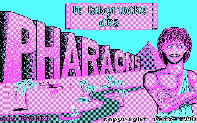 Как нетрудно догадаться, «Le Labyrinthe des Pharaons», разработанная известным французским археологом и египтологом Ги Раше и относящаяся к «средней» возрастной группе (10–12 лет), призвана трудиться на ниве исторической науки. Каждая игра от Retz представляла собой дело рук одного, максимум двух авторов, но общей для всех них изюминкой была умелая маскировка поучительно-образовательного продукта под представителя совсем иного жанра: аркаду, RPG, или, как в данном случае, адвенчуру, причём в антураже древнего Египта – за семь лет до «Egypte 1156 av. J.-C.: L’énigme de la tombe royale»! Сюжетная завязка заключается в том, что некий ужасный колдун по имени Кьян (это его зловещая физиономия взирает на нас с обложки игры и с плаката, входившего в комплект отдельных экземпляров) каким-то образом и скорее символически повредил или похитил весы Анубиса, на которых взвешивались умершие души, – в отместку за своего брата, покойного и столь же недоброго волшебника Сети, который после попадания его сердца на те самые весы был вместо отправки на «Прекрасный Запад» пожран чудовищем Аматом. Стремясь восстановить баланс правосудия, Анубис поручил миссию по спасению мира своему верному и мудрому слуге Мерире, но по дороге с ним произошёл какой-то несчастный случай – и, неожиданно очутившись в нашем времени и в комнате одного юного француза, роль которого и предстоит исполнять игроку, израненный посланник просит нас отправиться на важное задание вместо него... Ну, не страшно, во французских проектах того времени мы и не такое видали.
