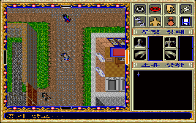 Игровой процесс можно разделить на три составляющих: посещение населенных пунктов, путешествия по глобальной карте и сражения. В городах всё напоминает игры серии Ultima: вид сверху под некоторым углом, интерактивность окружения (общение практически с любым NPC, осматривание и взятие предметов), система ключевых слов. Интерфейс иконочный и по большей части интуитивно понятен без понимания языка: глаз (посмотреть), губы (поговорить), рука (взять что-либо), молния (магия - стандартного вида из заклинаний атакующих - вроде малых огненных шаров - и лечащих), сон, тело (одеть доспехи и взять оружие), мешок (предметы), дискета (системное меню, откуда можно и сохраниться).