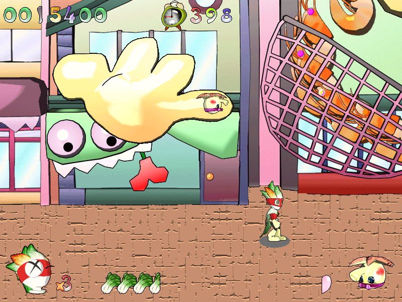 Игровой процесс представляет собой последовательное прохождение уровней со сбором бонусов (одни лишь добавляют очков, другие увеличивают здоровье или дают новые способности вроде двойного прыжка) и раздачей тумаков неприятелям. Последние являют разную ожившую еду и не только, - кастрюли, леденцы-самураи, суши, банки Pepsi и так далее. Также есть мини-игры (например, прохождение лабиринта).