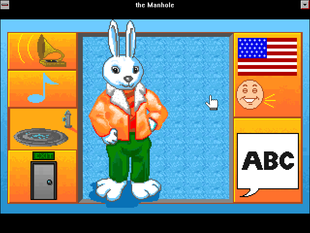 Стоит также добавить, что кроме обычного DOS «The Manhole: New and Enhanced» поддерживает также и Windows 3.1: в этом случае игру придётся устанавливать, а не просто запускать с диска, зато картинка в разрешении 640×480 выглядит ещё лучше, чем в 320×200, пусть и соседствует с чёрными полями, а из стандартной верхней строки операционной системы можно при желании перейти к «меню кролика» способом, альтернативным нажатию «Esc», или же просто вывести краткие справочные сведения о программе.