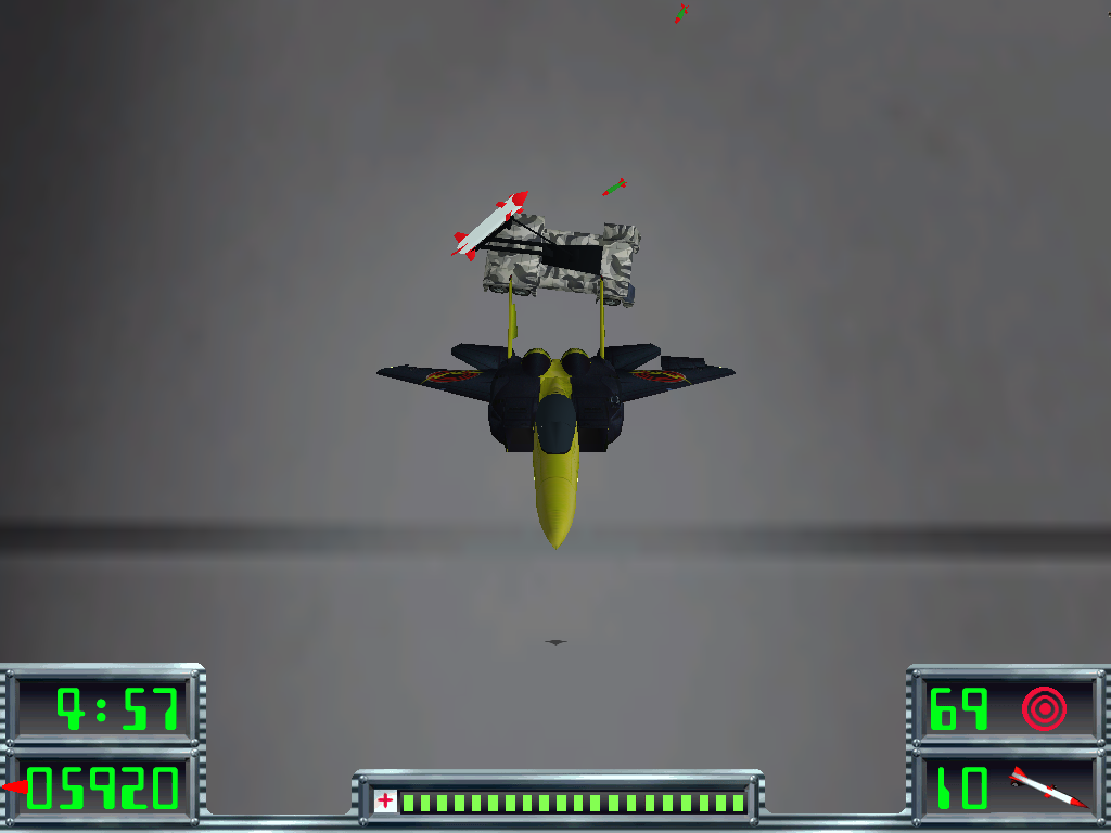 На самом простом уровне сложности летательным аппаратом (точнее, путем полета камеры) даже нельзя управлять, - получается просто интерактивный тир, где игроку позволено контролировать только положение прицела и ничего более. На "обычной" трудности непосредственное управление самолетом уже появляется, однако оно не прямое, а всё так же предполагает контроль над прицелом, но с возможностью ускоряться, тормозить и выделывать разнообразные выкрутасы. Наконец, высшая степень мастерства подразумевает максимальную же интерактивность - можно не только управлять самолетом, но и требуется правильно заходить на посадку, а также появляется менеджмент прочности и запасов ракет.