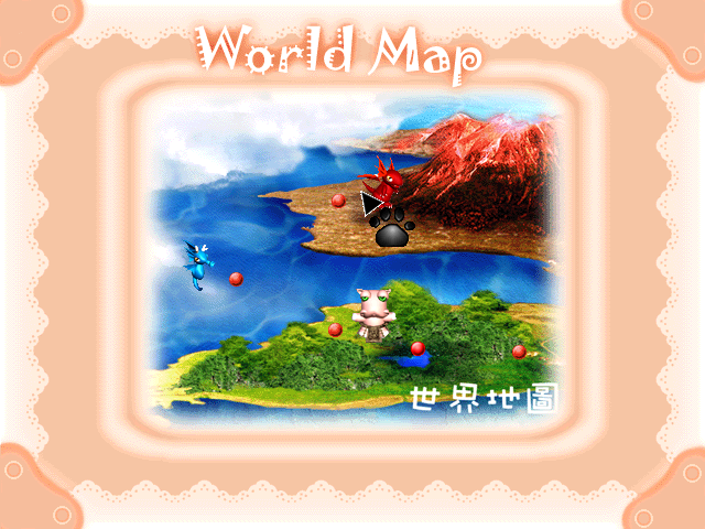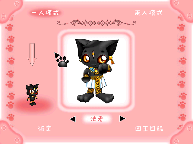 Раритетная тайваньская аркада с малопонятным сюжетом. Два дьявола, один небесный (падший ангел?), другой земной (вроде бы бывший фараоном), долгое время дружили, но потом рассорились из-за того, что не могли одолеть друг друга и понять, кто же сильнее. В конце концов первый предложил второму (представленному в облике антропоморфного чёрного кота в псевдодревнеегипетской одежде) доказать свою мощь и уничтожить с помощью энергетических мячей множество противников в разных мирах. Помимо факта, что перед нами, мягко говоря, бред, отметим, что на старте разрешается выбрать протагониста: им может стать не только вышеупомянутый индивидуум, но и розовая кошечка либо розовый же нахмуренный барашек (оба они также антропоморфны).