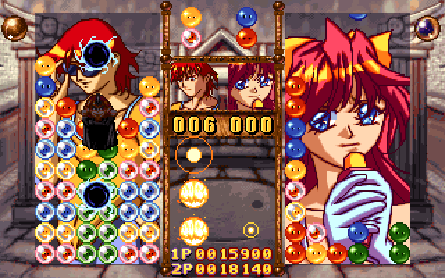 Довольно раритетный вариант Puyo Puyo, восточноазиатского гибрида Tetris и Columns, выпущенный изначально в Южной Корее; несмотря на это, практически все тексты в нём, ограниченные, по сути, лишь меню и опциями, на английском языке. На обложке жанр игры обозначен как "RPG & Arcade", а в ней самой имеется три режима: "история", "поединок" и "чемпионат". На самом деле сюжет в первом из них отсутствует напрочь, если не считать таковым "необходимость победы над злым стариком". Перед стартом нужно выбрать одного из шести персонажей (предлагаются два паренька, две девушки, девочка младенческого возраста и милая небольшая собака), после чего фигурка протагониста, отображаемая в изометрической перспективе, будет автоматически перемещаться по деревне, а при встрече с каким-либо NPC - в их ролях выступают остальные герои - загружается более-менее стандартная для данного направления игр схватка; последним противником является упомянутый выше злой старик, играть за которого, увы, нельзя. Отмеченные перемещения занимают буквально несколько секунд, причём даже их можно пропускать. Режимы поединка и чемпионата включают в себя исключительно партии и мало чем отличаются друг от друга: в первом это просто разовое сражение, ни к чему не приводящее, а во втором участники - всё та же шестёрка - разбиваются на пары и соревнуются друг с другом, причём вам нужно одолеть и своего первого оппонента, и победителей двух других матчей; выбор альтер эго в них обоих, как и в "истории", разрешён.