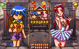 С правилами Puyo Puyo можно ознакомиться в описании этой игры или её подобий у нас на сайте, поэтому здесь ограничимся лишь кратким пояснением сути и перечислением сугубо местных особенностей. В целом всё стандартно: "пуё" у обоих соперников, падающие сверху на дно "стакана", представляют собой спаренные блоки, каждый из которых состоит из двух шаров, окрашенных одинаково или различно (цветов всего четыре: красный, жёлтый, зелёный, синий); если между собой по горизонтали или вертикали (в том числе в сочетаниях этих направлений, но не по диагонали) соприкасаются три или более упомянутых шаров одной расцветки, то все они исчезают, а расположенные выше них опускаются, что, в свою очередь, может привести к появлению новых "взрывов"; блоки допустимо вращать ("пробелом") и разделять приведением в горизонтальное положение и опусканием на "столбцы" разной высоты; замороженные шарики всех расцветок, разумеется, встречаются - и, как и в классическом варианте Puyo Puyo, освобождаются ото льда в том случае, если с ними граничит один из элементов уничтожающейся цепочки (но - опять-таки по традиции - таковой не исчезает вместе с ними, если был того же цвета). Сторонних объектов, могущих появиться на поле, всего четыре типа: два полезных - размораживатель (раскалывает лёд лишь у тех "собратьев", с которыми граничит) и бомба (делает то же, но со всеми шарами в определённом радиусе), один вредный - замораживатель (эффект по масштабу аналогичен первому упомянутому бонусу), а также "шароед", изначально падающий в "стакан" в замороженном виде и после оттаивания съедающий соседствующий с ним слева объект (что может привести как к положительным, так и к отрицательным последствиям); сохранять эти вещи и использовать их впоследствии по желанию нельзя. Кроме того, у каждого персонажа есть особые способности, которые он применяет по ходу поединка: один из парней, скажем, призывает зеленоволосого эльфа, очищающего большую часть его половины поля, а одна из девушек - другое волшебное существо, обращающее несколько партий блоков, в момент его появления готовящихся к падению в наш "стакан", в неуничтожимые орехи. Темп во время партий сравнительно быстрый, а уровень сложности относительно высокий, хотя выигрывать реально даже без применения "магии". Другое дело, что никакой "RPG" тут нет в принципе.