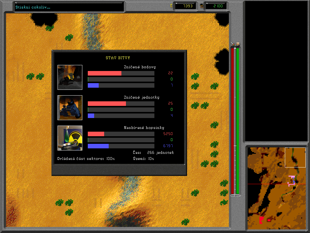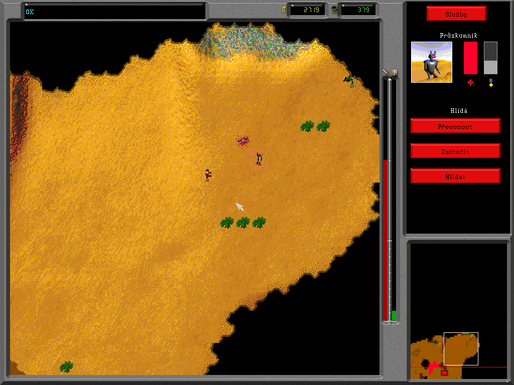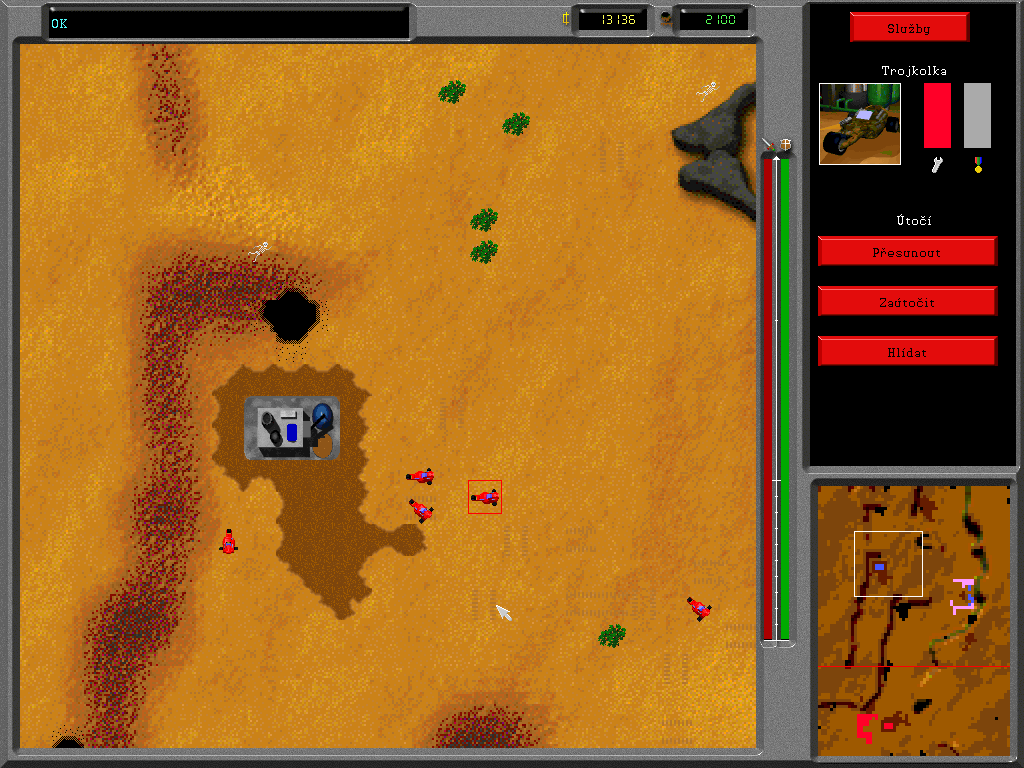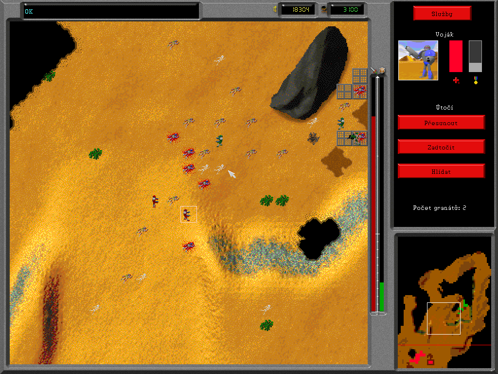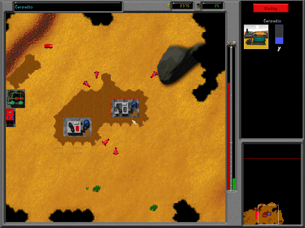 Игровой процесс прост, как пять чешских крон: у вас есть некое Главное здание, в котором можно «заказывать» разные строения – электростанции, заводы, казармы и пр. В отличие от «Дюны» база не требует предварительной подготовки стройплощадки, то бишь размещения особых бетонных плит (хотя в ассортименте они есть). Для нормального функционирования вашей армии требуются ресурсы: электричество, «хопсинка» и некая жижа, похожая на нефть. «Хопсинка» нам знакома по первой части игры, – это растение, поэтому и ведет себя соответственно: после сбора вырастает заново и легко повреждается тяжелой техникой. А вот нефть появляется впервые в Paranoia 2: выглядит как булькающая лужа коричневого цвета и добывается особым юнитом, похожим на бензовоз и способным трансформироваться в насосную станцию. Набор солдатиков изменений не претерпел: всё те же пехотинцы, траки, броневики и танки. Как и прежде, приказы раздаются индивидуально каждому юниту, - чехи были верны до конца «классической» схеме управления и так и не ввели «резиновую» рамку, – при этом из игры исчезла возможность «соединять» войска в цепочки командой «Следовать за…». Впрочем, сложностей с водительством больших отрядов у вас и не возникнет: солдатики исполняют поставленные задачи настолько медленно, что просчитать действия противника и принять контрмеры сможет даже ваша бабушка. А вот что действительно способно испортить настроение, так это чудной алгоритм поиска пути. Достаточно сказать одно – встретившиеся в чистом поле пара юнитов в 9 случаях из 10 не смогут разойтись…