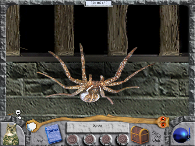 Большая часть действий разворачивается в одном огромном помещении (хотя впоследствии станут доступны и другие комнаты); перспектива обзора - от первого лица, причём "перемещение", по сути, ограничивается движениями мышью в стороны, позволяющими потихоньку обозревать всю локацию. На многие объекты (среди последних есть говорящие животные - сова, свинья, летучая мышь, чёрный кот) можно щёлкать (курсор приобретает в эти моменты форму кисти руки), что приводит либо к какому-нибудь звуковому эффекту, либо к взятию этой вещи (после чего она становится доступна в инвентаре, открывающемся по нажатию на сундук в правой нижней части экрана), либо к запуску мини-игры или монологу зверя, по итогам которого мы получаем ценную информацию, предмет, задание или просьбу о помощи. Примеры головоломок: запомнить последовательность, в которой человеческие головы издают звуки, и щелчками по ним повторить её; сложить средневековый гобелен из пронумерованных фрагментов (что довольно трудно, ибо поле разделено на клетки, которых всего на одну больше, чем элементов); прослушать мелодию и затем поднять каждый из семи шариков на шестах на высоту, примерно соответствующую той или иной ноте; за ограниченное количество ходов добиться определённого взаимного расположения цветных кружков; щёлкнуть на стоящие в шкафу книги таким образом, чтобы все они одновременно подсветились (нажатие на каждую активирует ещё несколько, тогда как ряд других при этом гаснет); поднять крышки бидонов, последовательно отыскав там пары одинаковых продуктов (очень простая мнемоническая игра, интересная разве что своей целью - накормить белую мышь); и так далее. Для выхода из режима головоломки или разговора нужно нажать на белый кружок с чёрточкой в левой нижней части экрана. Если требуется применить какую-либо найденную вещь, то достаточно просто зайти в инвентарь, взять её оттуда и поднести курсор с нею к объекту (ключ к скважине или, например, расчёску к коту).