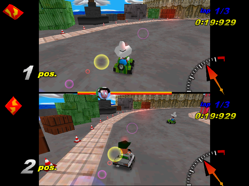 Детская гонка в перспективе от третьего лица, где как машины (скорее сказать - машинки), внешне похожие на карты, так и их водители - игрушки; среди последних, к сожалению, нет животных или монстров - только люди, но в их числе присутствуют ковбой, арабский шейх (с характерным именем Саддам) и бородатый латиноамериканский военачальник, так что хотя бы сколько-нибудь интересного протагониста отыскать можно. Автомобили тоже предлагаются разные, но реальные отличия между ними, по-видимому, отсутствуют.