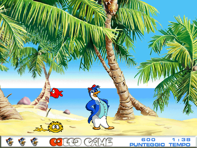 Сюжет следующий: у нашего протагониста - пингвина, приехавшего отдохнуть на тропический остров, - обезьяна украла кокос, и теперь его задача - вернуть себе лакомство. Герой умеет прыгать и приседать (с помощью верхней и нижней курсорных стрелок соответственно), а также стрелять ("пробелом") некой странной субстанцией, имеющейся у него в бесконечном количестве; правда, способность эта доступна ему лишь на одном из уровней (а последних здесь всего четыре), где противники как таковые отсутствуют.