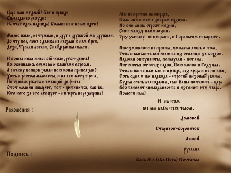 Здесь незадачливый студент обнаруживает, что теперь он нарисованный, а попал сюда благодаря махинациям Бабы-яги, избравшей его в качестве героя, которому поручена важная миссия: доставить петицию от сказочных существ царю. Дело в том, что в их мир понаехали персонажи западных сказок, которые притесняют наших родненьких при активной помощи коллаборациониста Кощея, скрывающего реальное положение вещей от правительства. А так как нечисть ко двору не пускают, то Иван - их единственная надежда. После неудавшейся попытки сопротивления сложившимся обстоятельствам парень получает текст петиции и подписной лист, с которым надо пройтись по ряду населяющих сказочную страну персонажей и заручиться их голосом. Эти граждане - русалка, леший, старичок-боровичок, домовой и сама костяная нога.