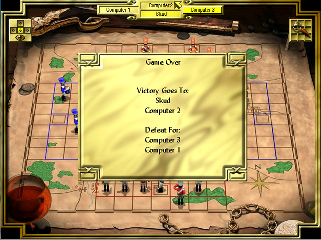 Но это всё Stratego классический. В компьютерном варианте предусмотрены несколько вариаций правил игры - для повышения интереса, так сказать. Во-первых, “Ultimate Lightning” – «укороченная» за счет меньшего числа фигур (всего 20 штук) у участников версия, в которой на «скаутов» возложены обязанности саперов, а «капитанам» добавили скорости: теперь они ходят на две клетки. Также дважды за партию можно воскресить ранее уничтоженную фишку. Во-вторых, “Ultimate Campaign” – почти всё то же самое, что и предыдущий режим, за исключением «спасения» фигур. У игроков в резерве есть еще одна армия, которая может вводиться в бой по одной фигуре за ход. Первым всегда выставляется знаменосец. Победа присуждается, если будут захвачены оба флага - или первый, до того как будет выставлен второй. В-третьих, два режима на четверых игроков, которые делятся на две команды. Тут изменений побольше: вместо бомб участникам выдается пушка, стреляющая через две клетки, а «флаг» может перемещаться по доске. При захвате знаменосца он не убирается с поля боя, а помещается на сторону захватчика и находится там до того, пока не закончится партия либо он не будет спасен дружественной фигурой. Плюс все возможности из прошлых режимов.